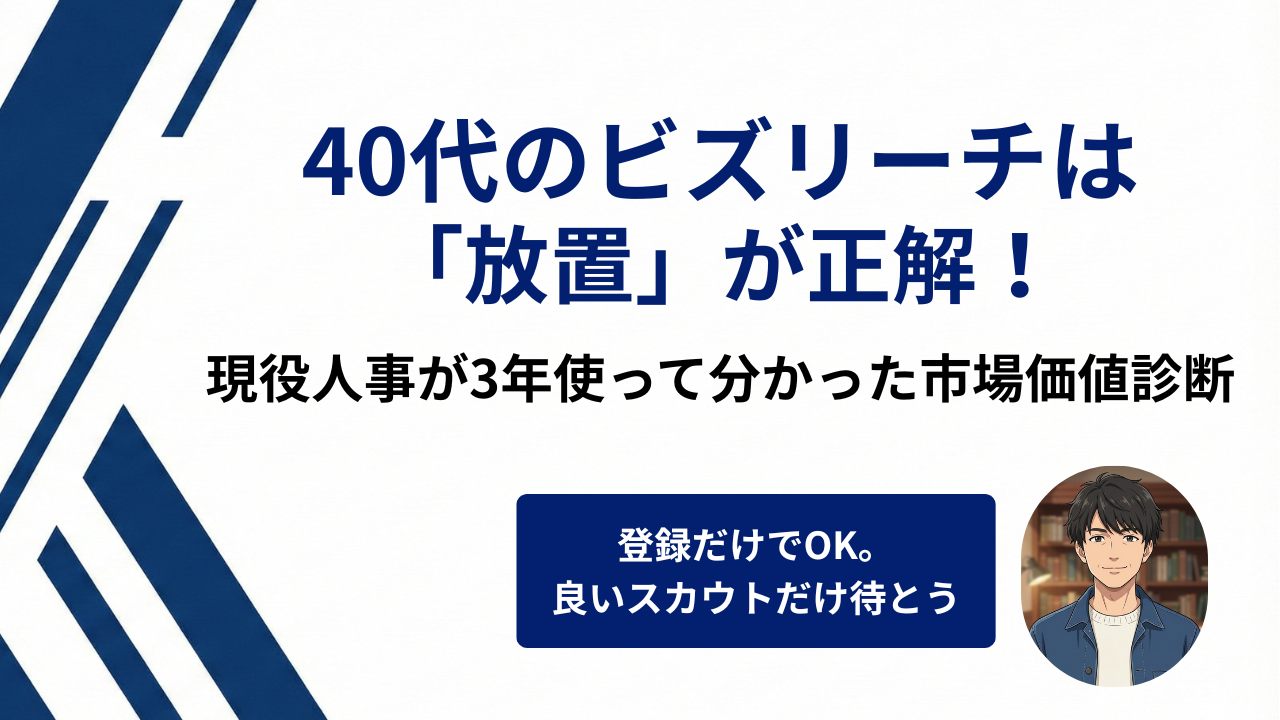 まずは登録してみて、**「今の自分の等身大の経歴で、世間からどんな反応があるのか」**を見るためのテストツールとして使う。それだけでも、40代からのキャリア戦略において十分に価値があります。