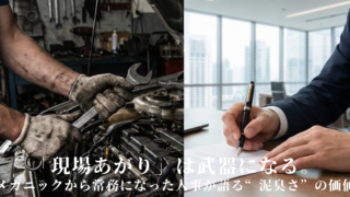「スマートな経歴がないと転職できない」は嘘です。メカニックから常務まで上り詰めた現役人事が、40代の「泥臭い現場経験」こそが最強の武器になる理由を解説。1社目の「当たり前」は、他社では「高スキル」かもしれません。市場価値を知る勇気を。