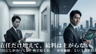 「出世しても責任が増えるだけで給料が上がらない」と悩む40代へ。それはあなたの能力不足ではなく、会社の構造の問題です。現役人事が教える、社内評価(上司の好き嫌い)と市場価値(世間の評価)のズレを利用して年収を上げる方法とは?