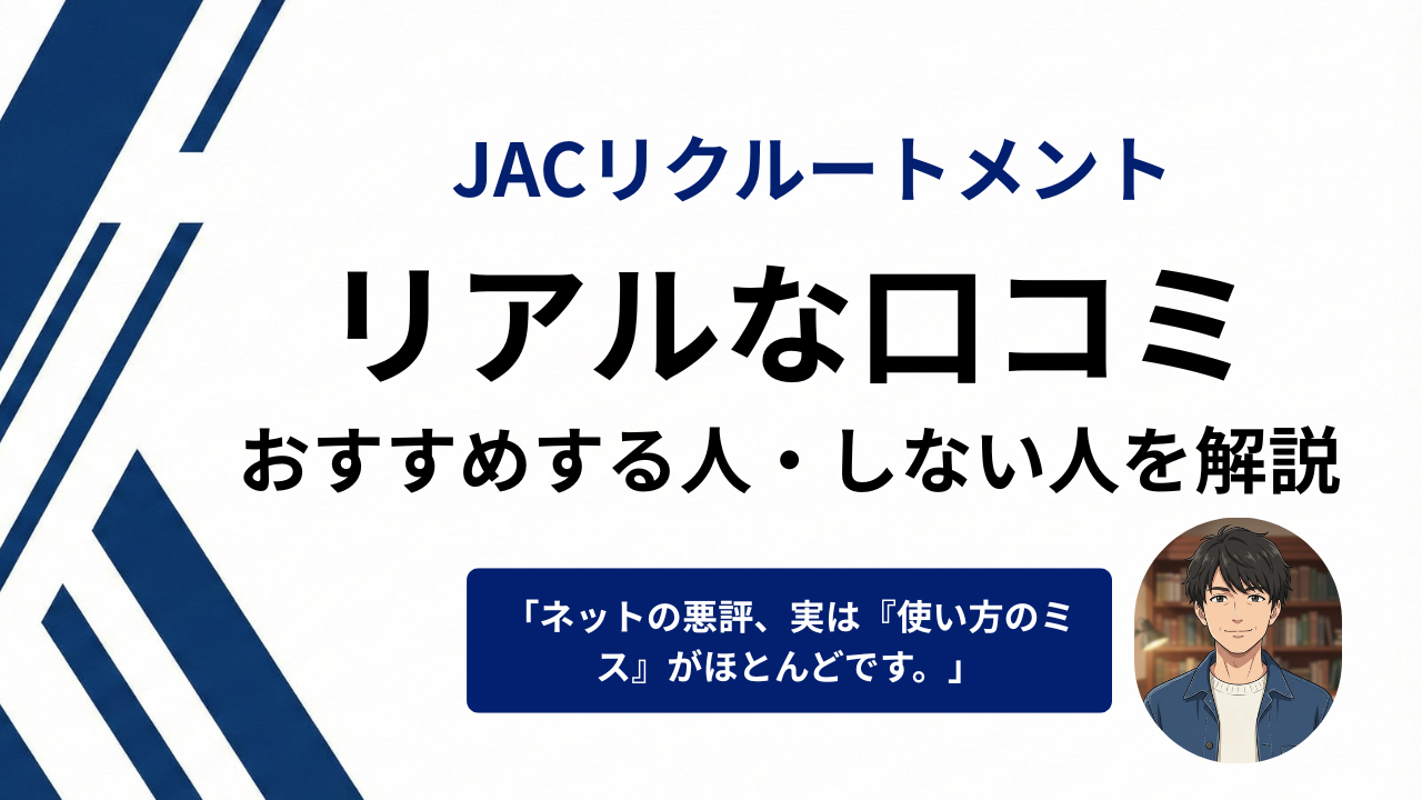 『JACは敷居が高い?』『年収が高くないと相手にされない?』と一歩引いている40代の方へ。現役人事として採用にも関わる私が、ネットの噂を解剖し、JACの真実を本音で暴露します。実は『冷たい』と言われる裏には、プロとしての誠実な理由があります。実体験から美味しいとこ取りのコツを徹底解説します。