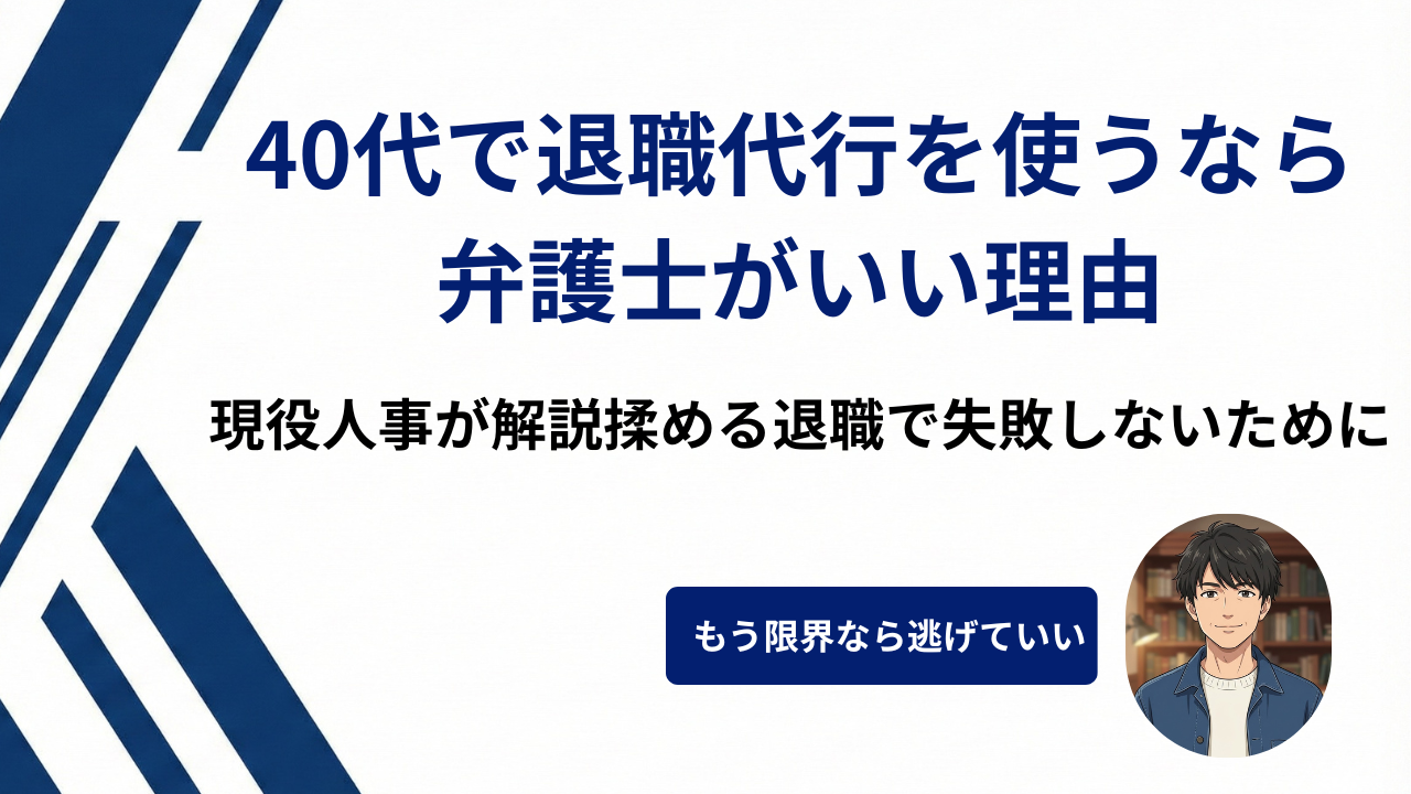 現役人事の視点から、40代が退職代行を使うべきケースと、弁護士を選ぶべき理由を解説します。